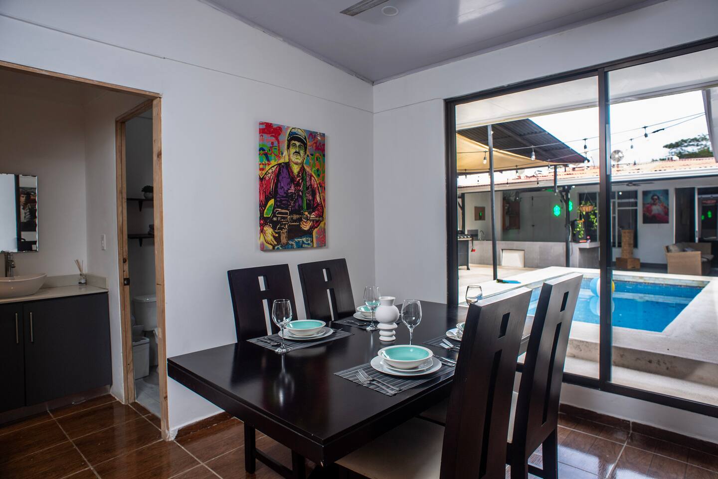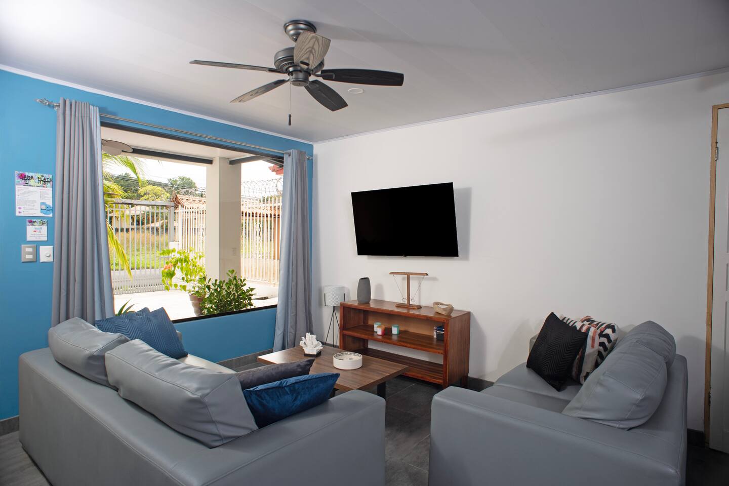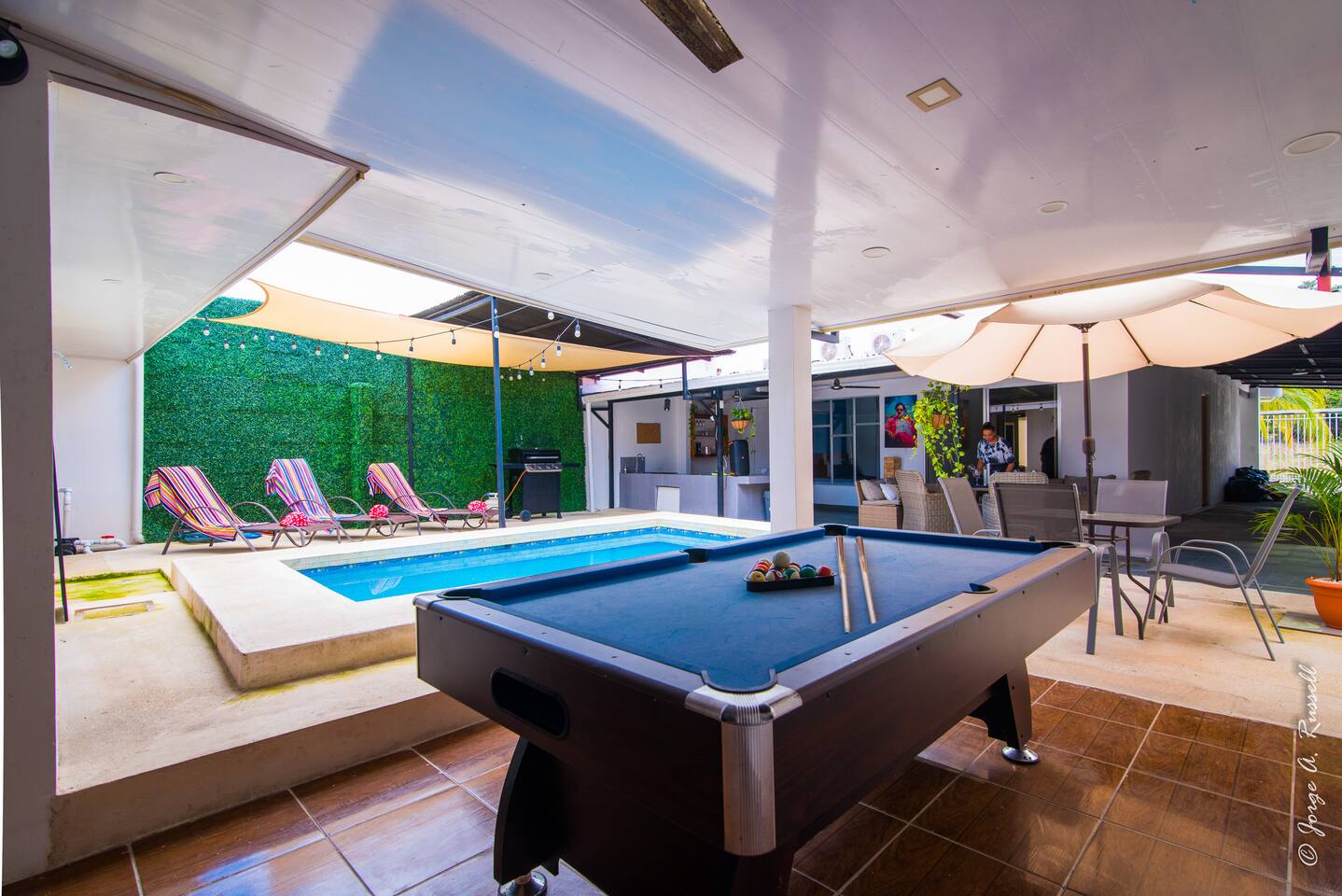 The Property boasts an upscale 5 bedrooms, 2 baths which are divided between the main house and guest house. Each of the bedrooms has its own air conditioning unit and Smart TV with complimentary access to Netflix, YouTube and regular channels. Also there is a Smart TV in the living room and multiple wireless Bluetooth speakers for your events. Oh, don't forget! - the gorgeous Billiards-Pool table right beside the pool! Soak up the sun with plenty of outdoor seating space & BBQ with a wet bar to relax and have fun. Our backyard is regularly visited by Macaws, Toucans, Parrots and hummingbirds. This beautiful Beach House will comfortably sleep 10 persons in 5 bedrooms of the highest level of comfort. BED ARRANGEMENT Choose your bed selection between: - 6 single beds which can be turned into King beds. - And 2 Queen size beds.